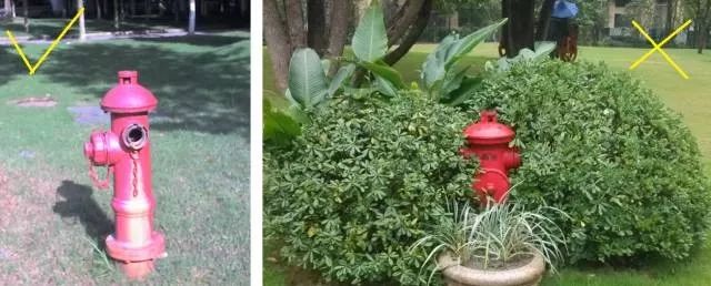 室外消火栓周圍無遮蔽物,且距離車行道路邊的距離不大于2m