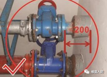 b.防護閥門設置離墻太遠(錯誤做法):