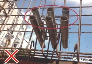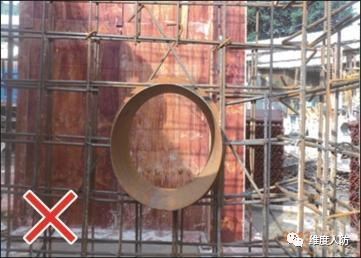 a. 由于前期未做好預埋,后期消防管線安裝時出現(xiàn)亂鉆孔現(xiàn)象(錯誤做法):