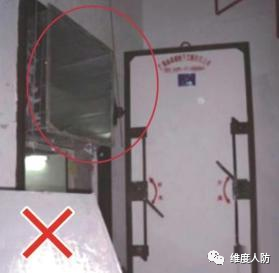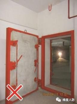 a.通道隔墻阻礙防護門正常開啟(錯誤做法):