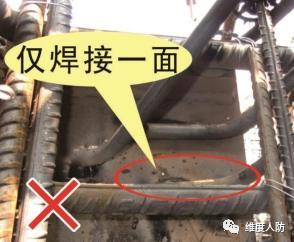 a. 鋼門框與門框墻之間應有足夠的連接強度,相互連成整體;錨固鉤需雙面焊接,焊縫飽滿。(錯誤做法):