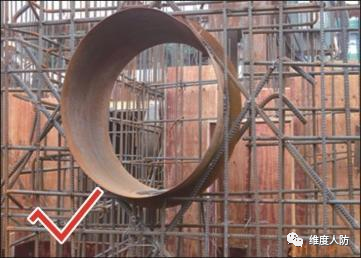 b. 按要求在孔洞口加設加強鋼筋(正確做法):