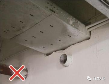 c.由于前期未做好預埋,后期弱電安裝時出現(xiàn)亂鉆孔現(xiàn)象(錯誤做法):