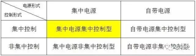 消防應急照明和疏散指示系統按控制形式分為集中控制和非集中控制,應急電源的實現方式有集中電源和非集中電源。所以就有4類系統形式: