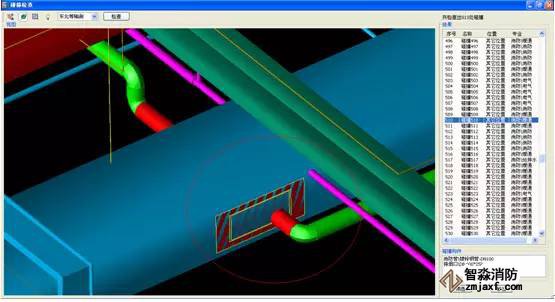 BIM技術,即將施工的建筑和機電設備管線進行三維建模,并采用BIM技術中具有可視化模型及碰撞檢測功能,對現有信息模型進行碰撞檢查,可直觀地發現管線綜合中的問題,及時調整,從而減少了施工中不必要的返工,提高了消防工程安裝的一次成功率,從而達到工程對標高及施工質量的高要求。