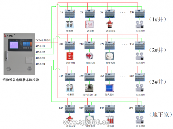 根據(jù)智能化管理要求,需要對整個商場綜合樓的消防設備供電電源的工作狀態(tài)進行全過程連續(xù)監(jiān)測、集中控制和統(tǒng)一調(diào)度。
