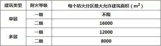 注:當(dāng)建筑設(shè)自動滅火系統(tǒng)時,最大允許防火分區(qū)面積可以按本表增加1.0倍。