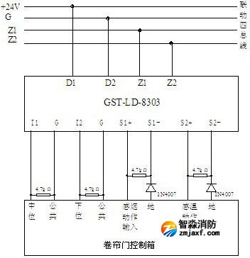 圖13 GST-LD-8303模塊與防火卷簾門電氣控制箱(標準型)接線示意圖