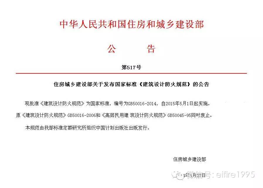 《建筑設計防火規范》和《高層民用建筑設計防火規范》合并為新的 《建筑設計防火規范》GB 50016-2014(以下簡稱新《建規》)。新《建規》的主編單位:公安部天津消防研究所、公安部四川消防研究所。解釋單位:公安部消防局組織天津、四川消防研究所負責具體技術內容的解釋。 |