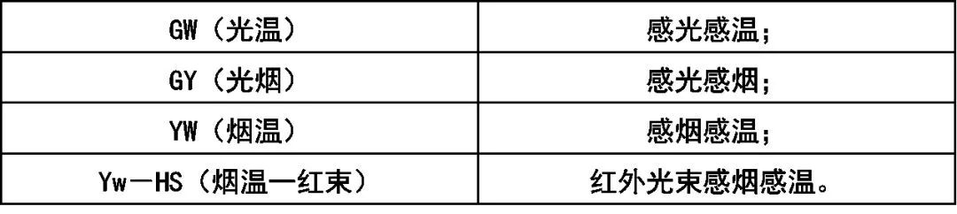 感煙火災探測器、感光大災探測器、 可燃氣體探測器傳感器特征表示法: