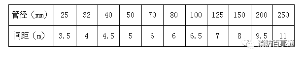 (4)自動噴水滅火系統管道支、吊架選材及做法應滿足要求,支吊架最大間距應符合下表: