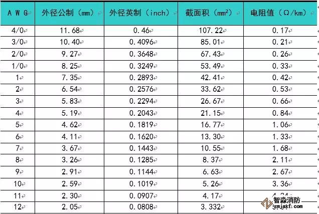 表5 AWG與公制、英制單位對照表
