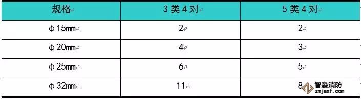 典型的線管可以鋪設的雙絞線根數見表3。