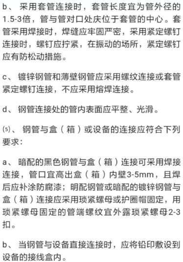 a、 采用鋼管做燈具的吊桿時,鋼管內徑不應小于10mm,鋼管壁厚不應小于1.5mm。