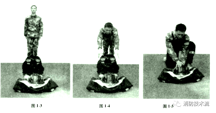 聽到“第一名出列”的口令,消防員答“是”,跑步至起點(diǎn)線立正站好(見圖1-3),聽到“準(zhǔn)備”口令后,消防員做好操作準(zhǔn)備。