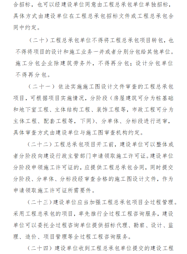 13、采用工程總承包的新開工政府投資項目,施工合同工期18個月及以上的全面推行施工過程結算制度。