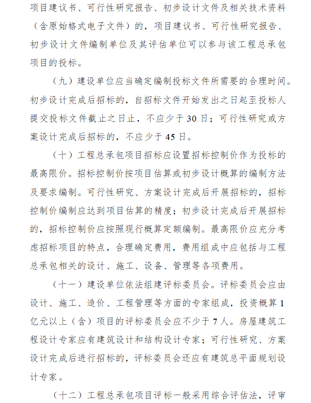 4、建設單位依法組建評標委員會。評標委員會設計、施工、造價、工程管理等方面的專家組成,投資概算1億元以上(含)項目的評標委員會應不少于7人。房屋建筑工程設計專家應有建筑設計和結構設計專家;可行性研究、方案設計完成后進行招標的,評標委員會還應有建筑總平面規劃設計專家。