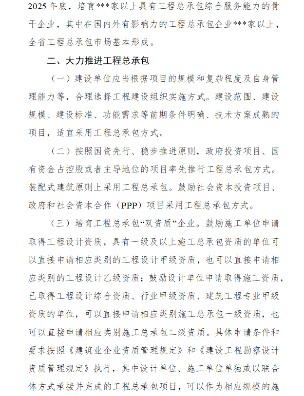 • 2022年底,全省工程總承包的政策制度和監管體系基本健全;