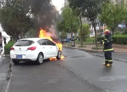 抵達現場后,消防救援人員發現一輛白色轎車停在非機動車道上,轎車車頭正在猛烈燃燒,駕駛員已經棄車離開。消防救援人員立即出水進行撲救,10分鐘左右大火被成功撲滅。