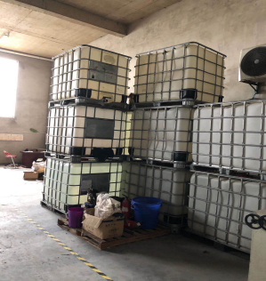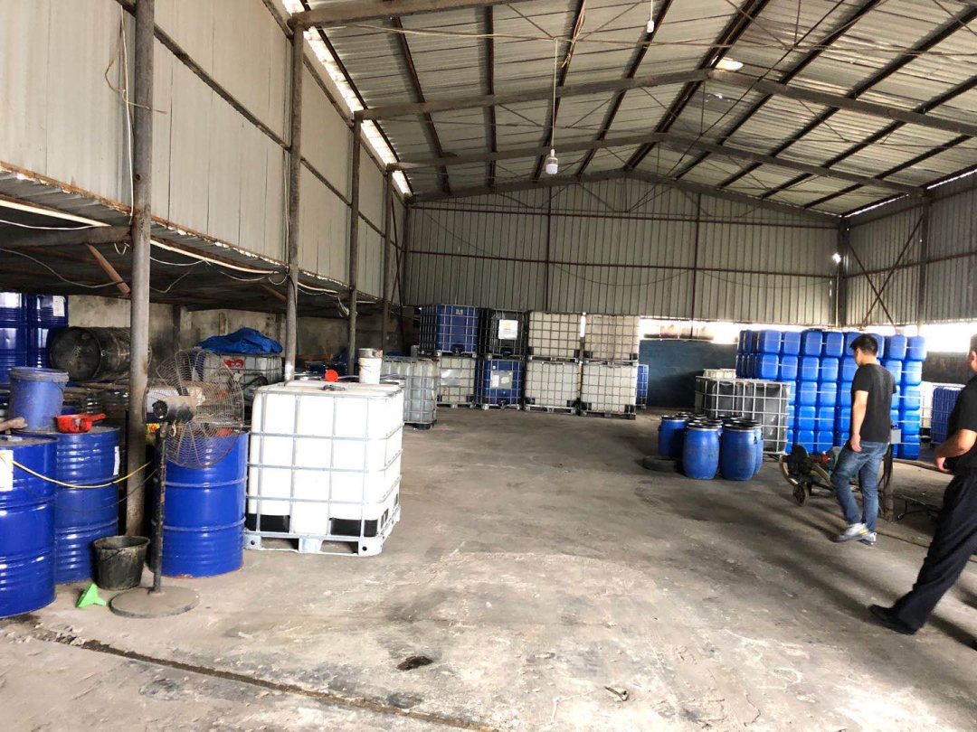 檢查發現企業危險化學品甲醇12*1000KG和輔料促進劑10*160KG、甲酯、乙酯和部分空桶(鐵桶、噸桶)等未設置存放在專用倉庫內。