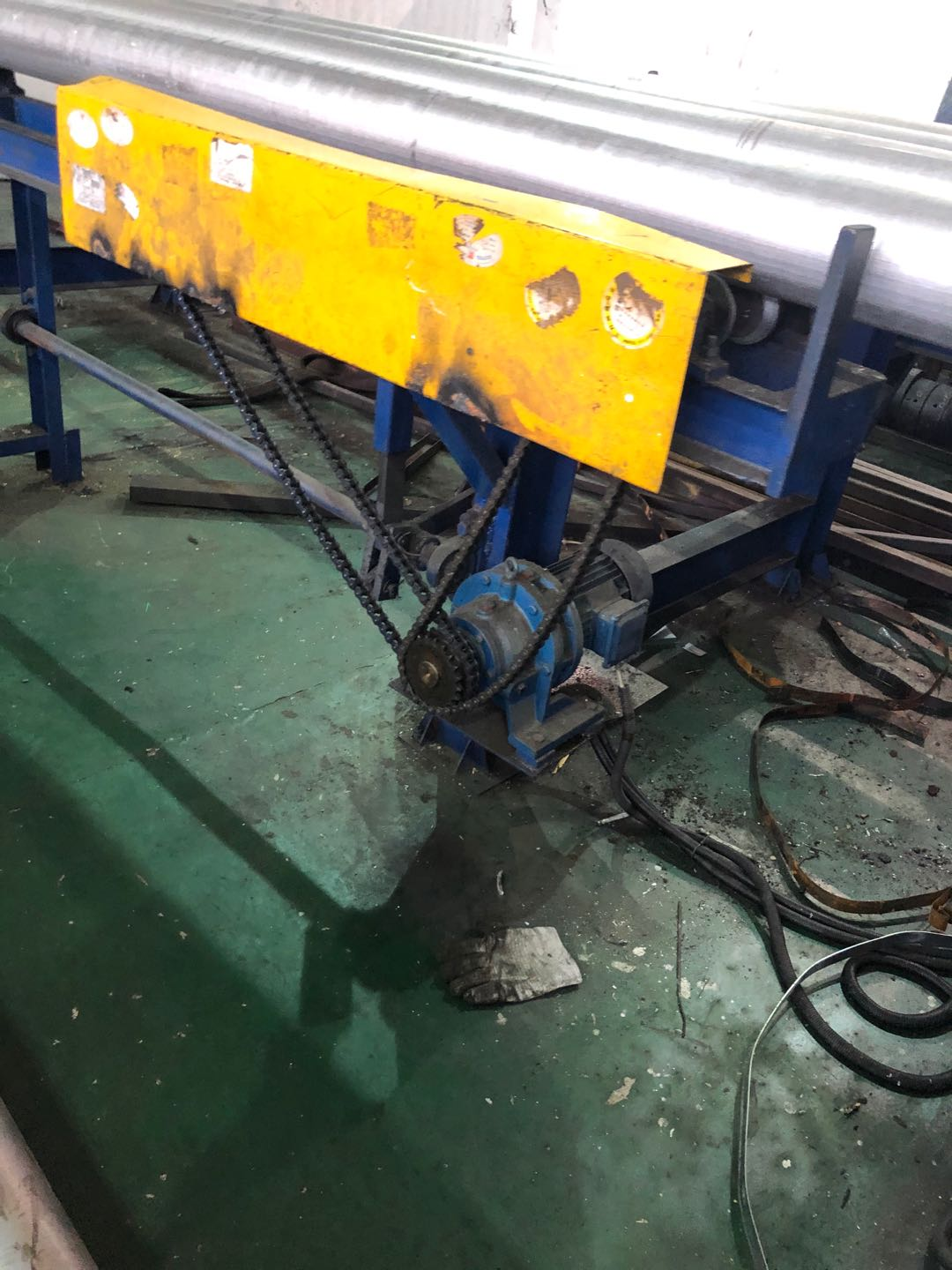 生產車間東側熱剪爐,部分傳動鏈輪未見防護罩