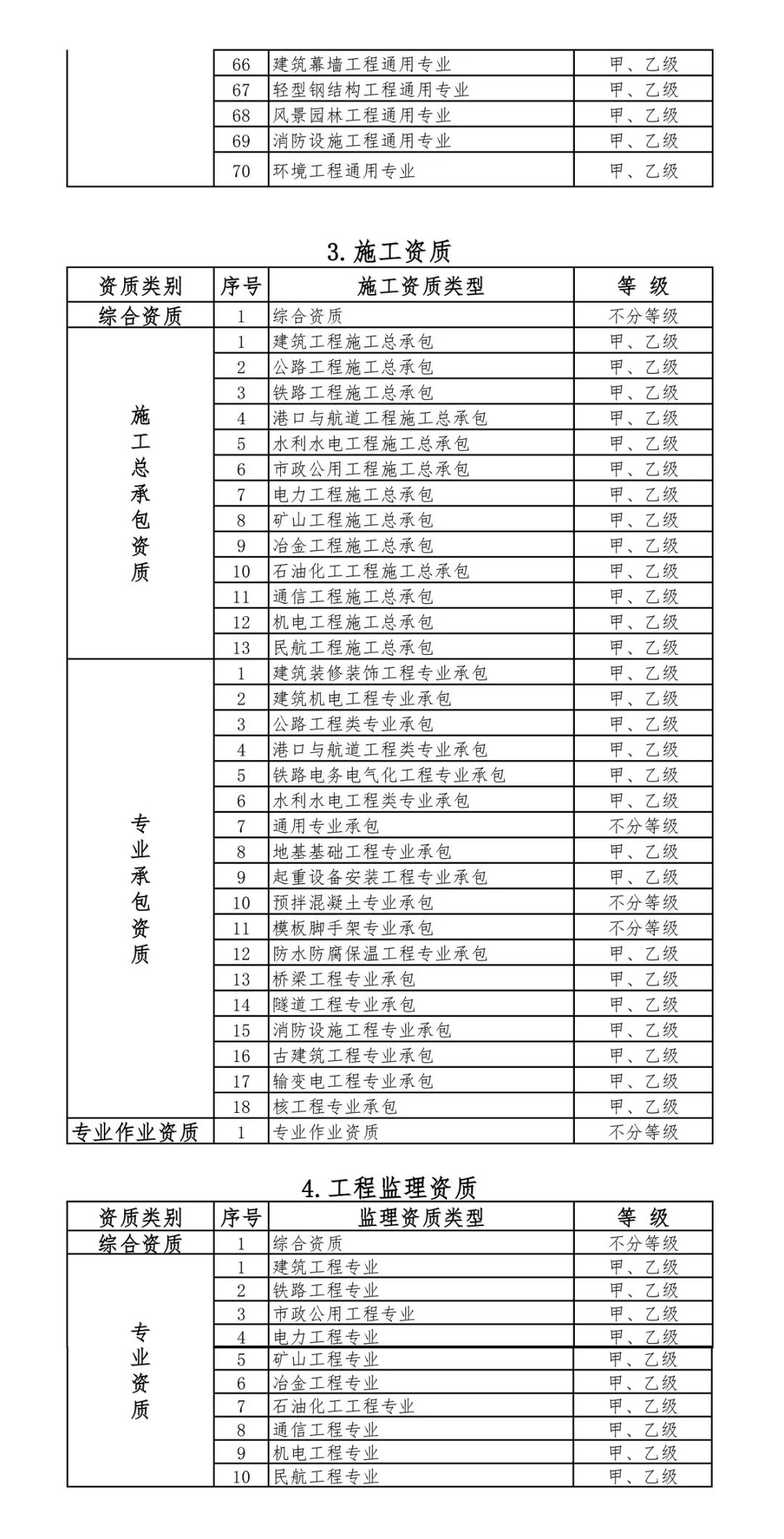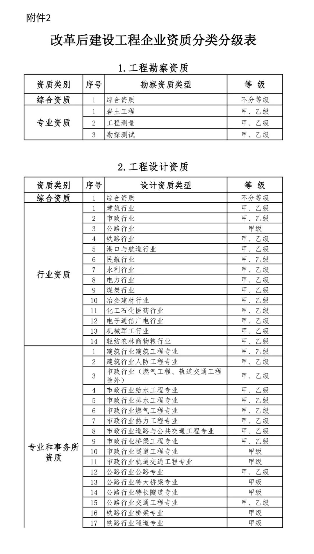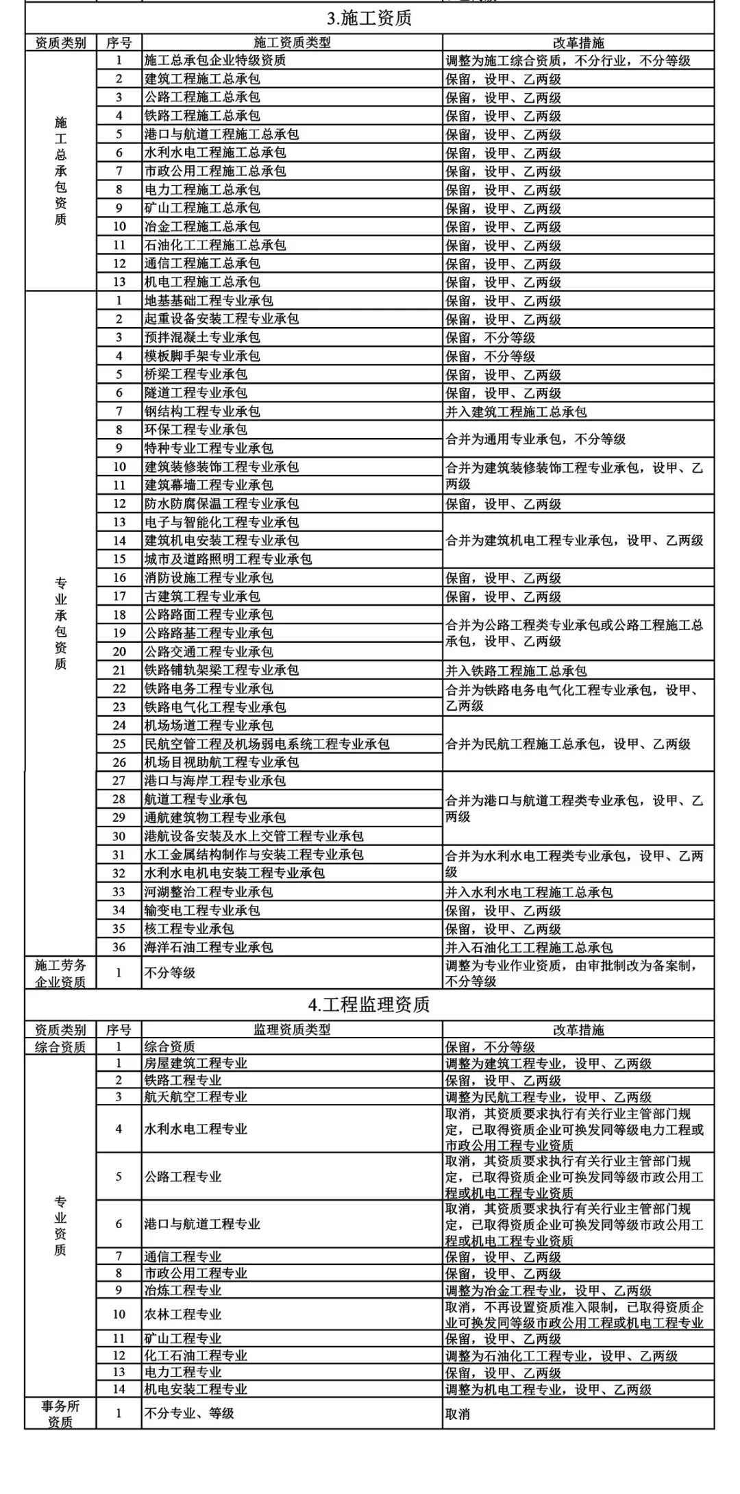 2.改革后建設(shè)工程企業(yè)資質(zhì)分類分級(jí)表