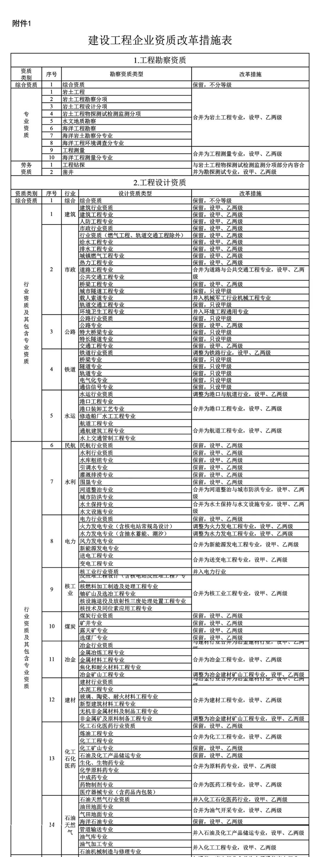 附件:1.建設(shè)工程企業(yè)資質(zhì)改革措施表