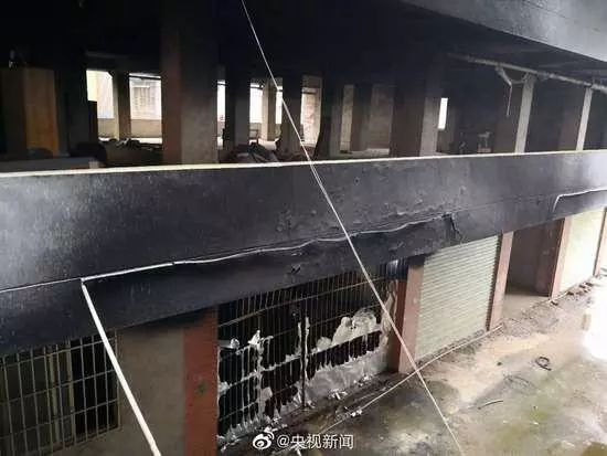↑事發(fā)后一樓及二樓架空層均被濃煙熏黑圖據(jù)央視新聞