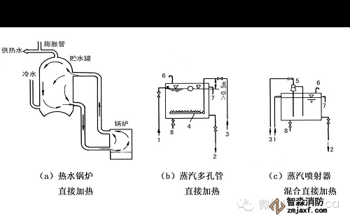 直接加熱設備:鍋爐直接加熱、蒸汽多孔管或蒸汽、噴射器加熱水箱;