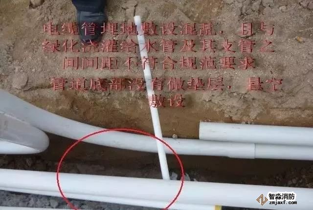 ②電纜管與綠化澆灌給水管混在一起敷設(shè),沒(méi)有安全間距。