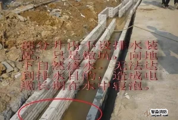 ②電纜的溝內(nèi)積水嚴(yán)重,沒(méi)有設(shè)排水設(shè)施。