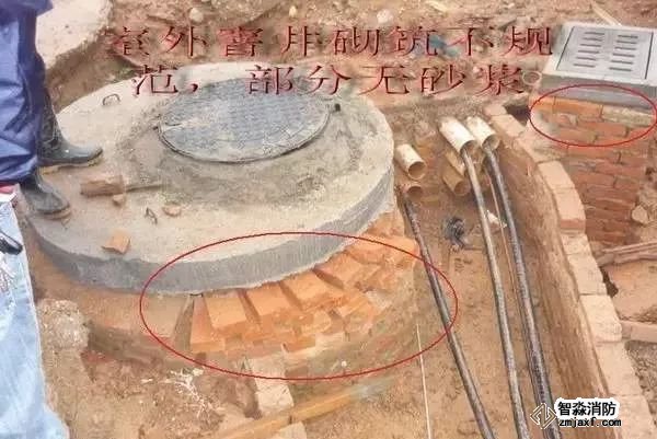 ①室外排水檢查井砌筑時(shí)沒(méi)有鋪水泥砂漿。