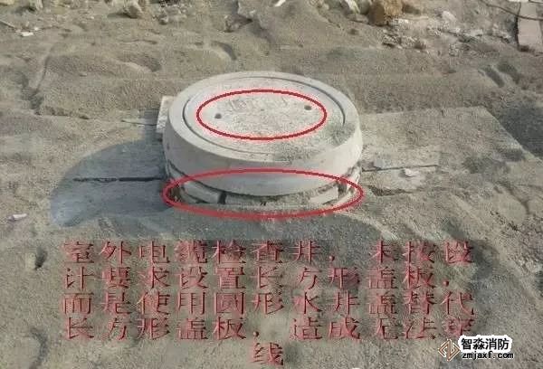 ①室外電纜檢查井,采用排水檢查井蓋替代,影響電纜穿線施工。