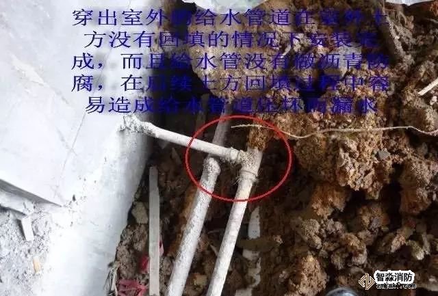 ①室外土方?jīng)]有回填,給水管已經(jīng)敷設(shè)完成,施工程序顛倒。